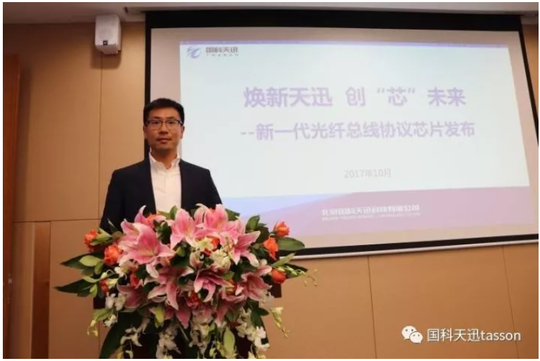 国科乐鱼手机网页版登录入口-乐鱼(中国)市场部经理徐俊亭为大家讲解并发布国内高可靠光纤通信领域的首款总线协议芯片产品。